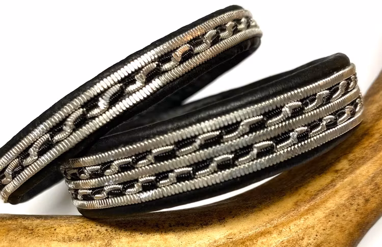 Läderarmband i vegetabiliskt garvat renskinn med renhornsknapp.